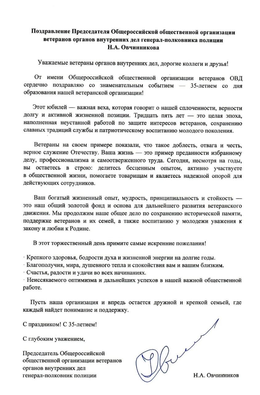 Поздравление Председателя Общероссийской общественной организации